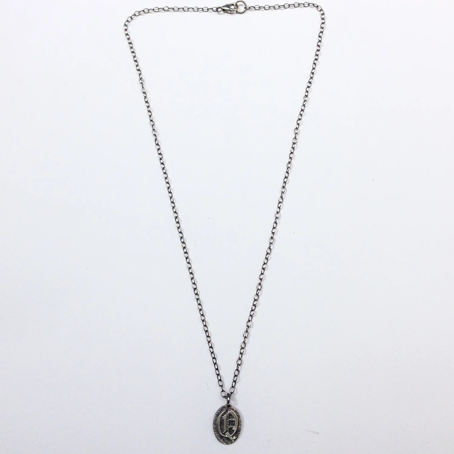 Old English M Monogram Half Dollar Necklace (Close Up)