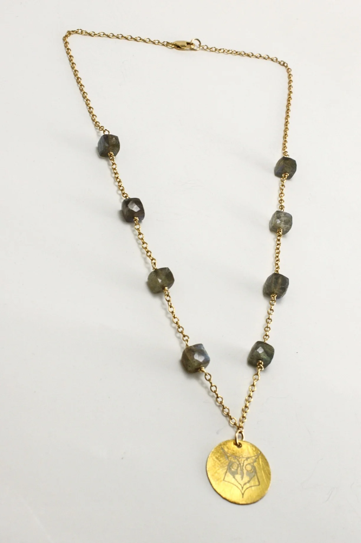 Vermeil Laser Engraved Owl Labradorite Necklace